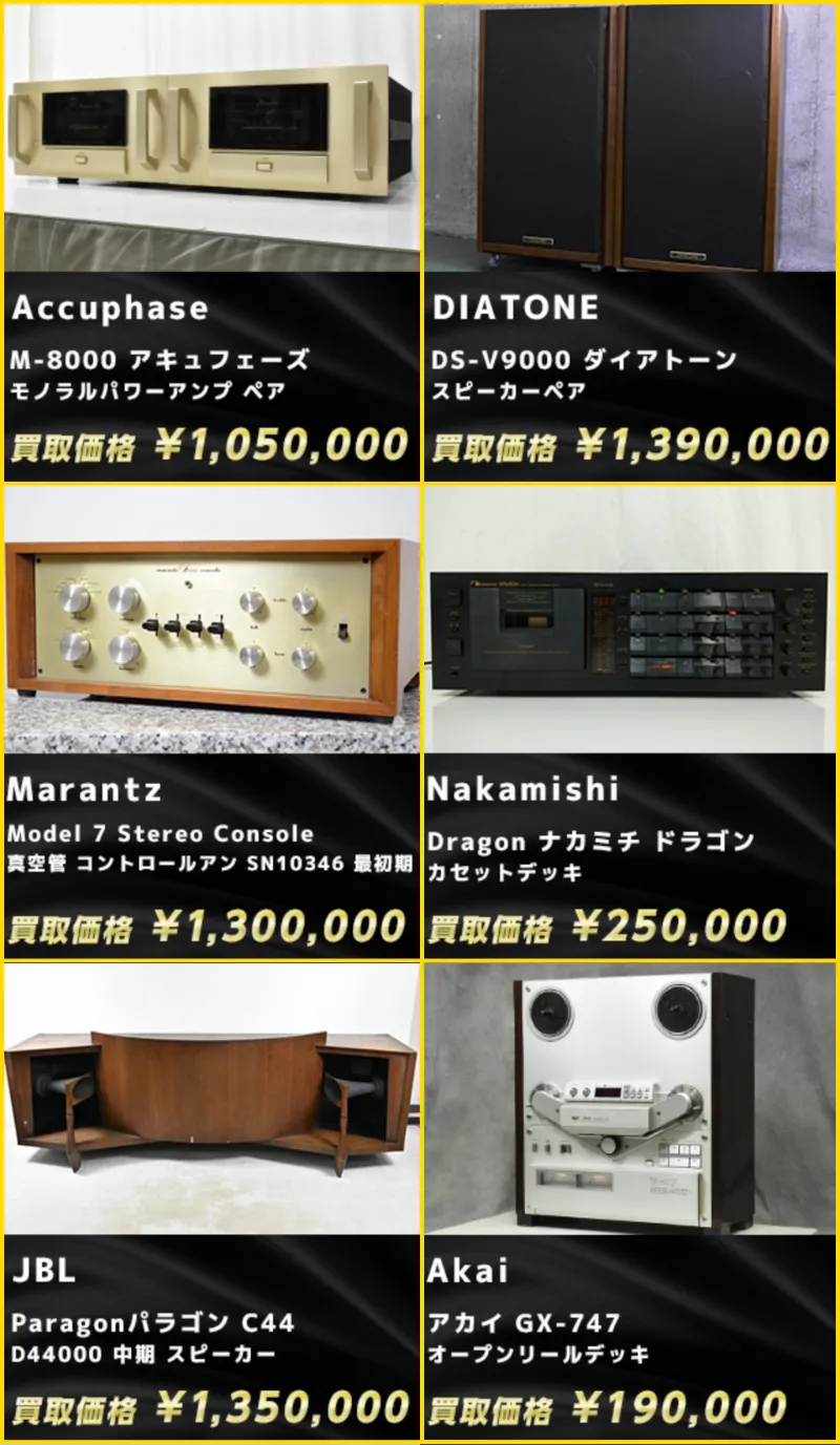 さすが、100万円超のハイエンドオーディオ買取実績が日本でトップクラスという感じです。