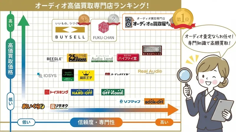 オーディオを販売する際に大切なのは『高価買取価格』と『信頼性・専門性』になります。