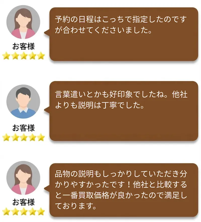 さらに、業界で問題になっている『押し買い』は絶対にやらないスタンスなので信頼できます!