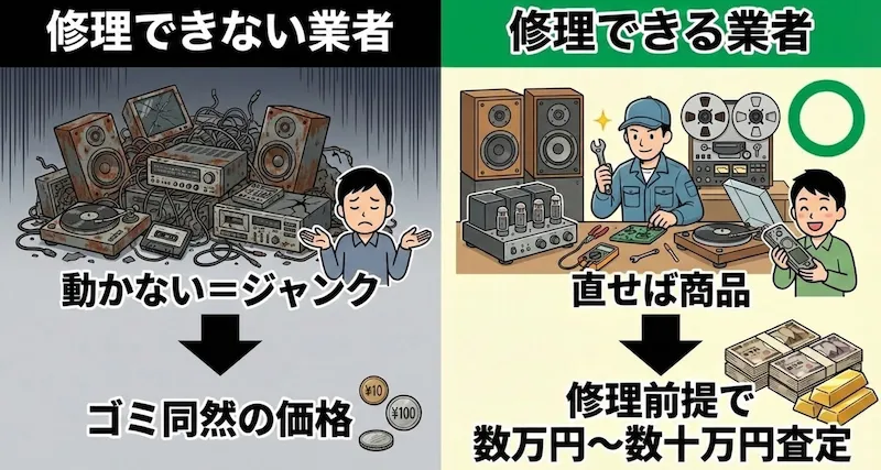 専門業者は「今の状態」ではなく、「修理後にいくらで売れるか」から逆算して査定します。